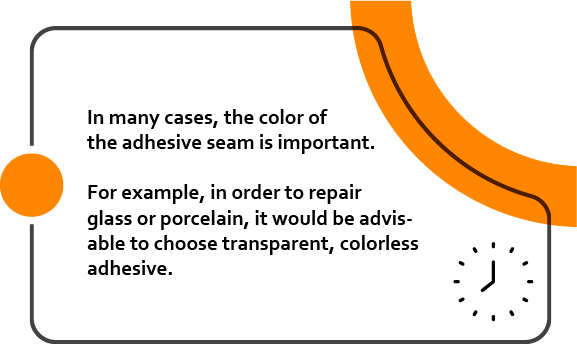 In many cases, the color of the adhesive seam is important. For example, in order to repair glass or porcelain, it would be advisable to choose transparent, colorless adhesive